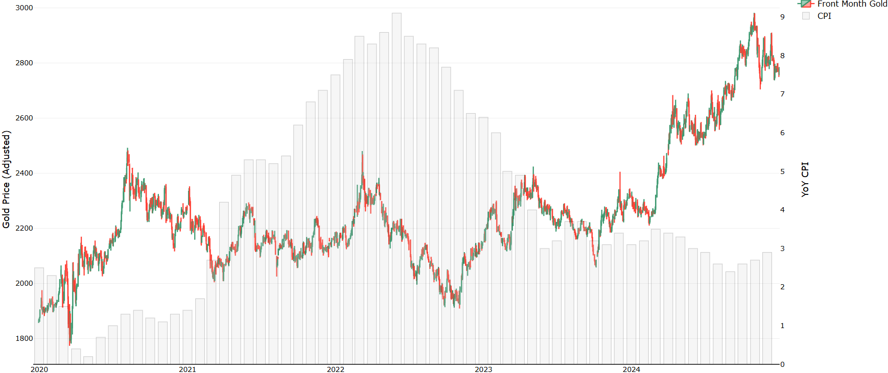 Chart 2: Gold (Continuous Front Month Contract) as Inflation Hedge Narrative