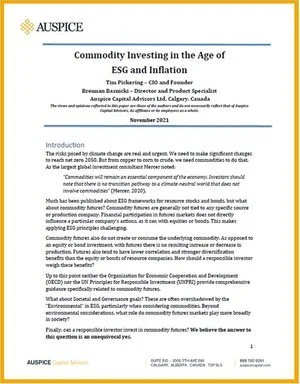COMMODITY INVESTING IN THE AGE OF ESG AND INFLATION